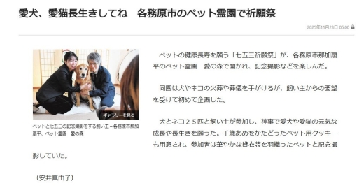 11/8(土)に当園で開催された七五三の様子が、岐阜新聞 朝刊 11/23(日)付に掲載されました。