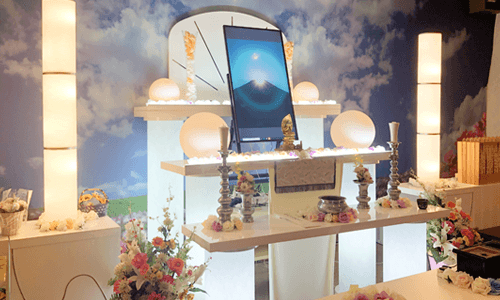 天空をテーマにしたお部屋で、お別れの式を執り行います。